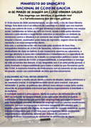 MANIFESTO DO SINDICATO NACIONAL DE CCOO DE GALICIA POLO D脥A DA CLASE OBREIRA GALEGA