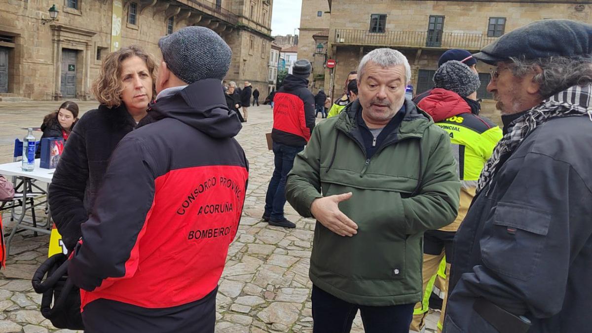 CCOO acompañou os bombeiros dos parques comarcais na súa acampada reivindicativa en Santiago en defensa dos seus dereitos laborais